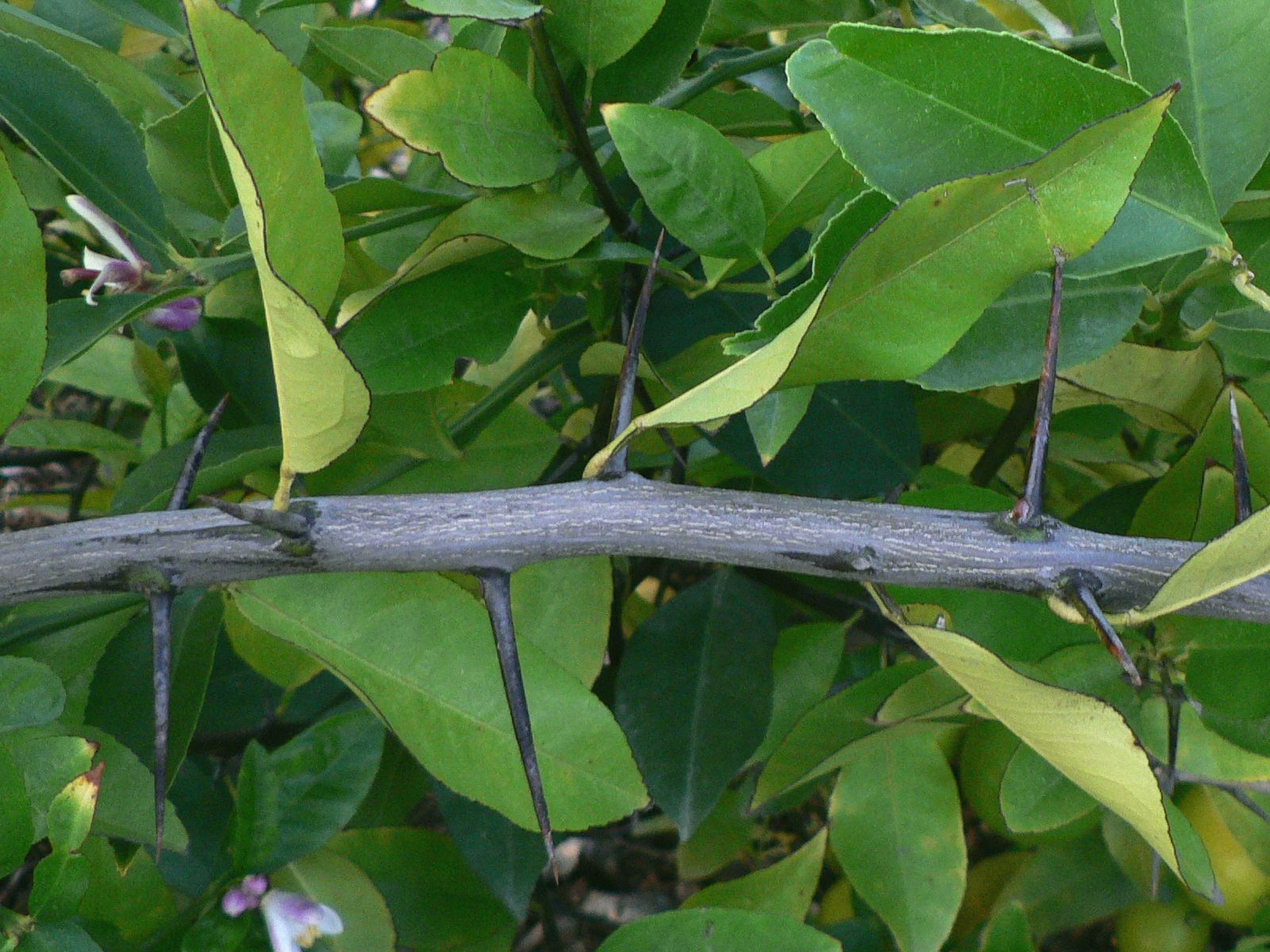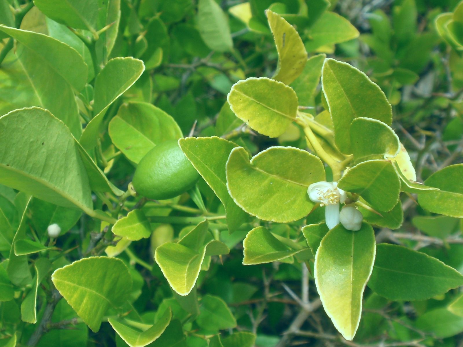 有一种叫做‘墨西哥无刺’莱姆Thornless Mexican lime (下图)的品种,据说是普通‘墨西哥’莱姆的芽变。据报道,这种枝条是从墨西哥进口的。加州大学河滨分校的CVC网站的说明:这株树的特征表明它是一个杂交品种,但其果实与普通的‘墨西哥’莱姆几乎没有区别,唯一的特点是它的树上没有刺。