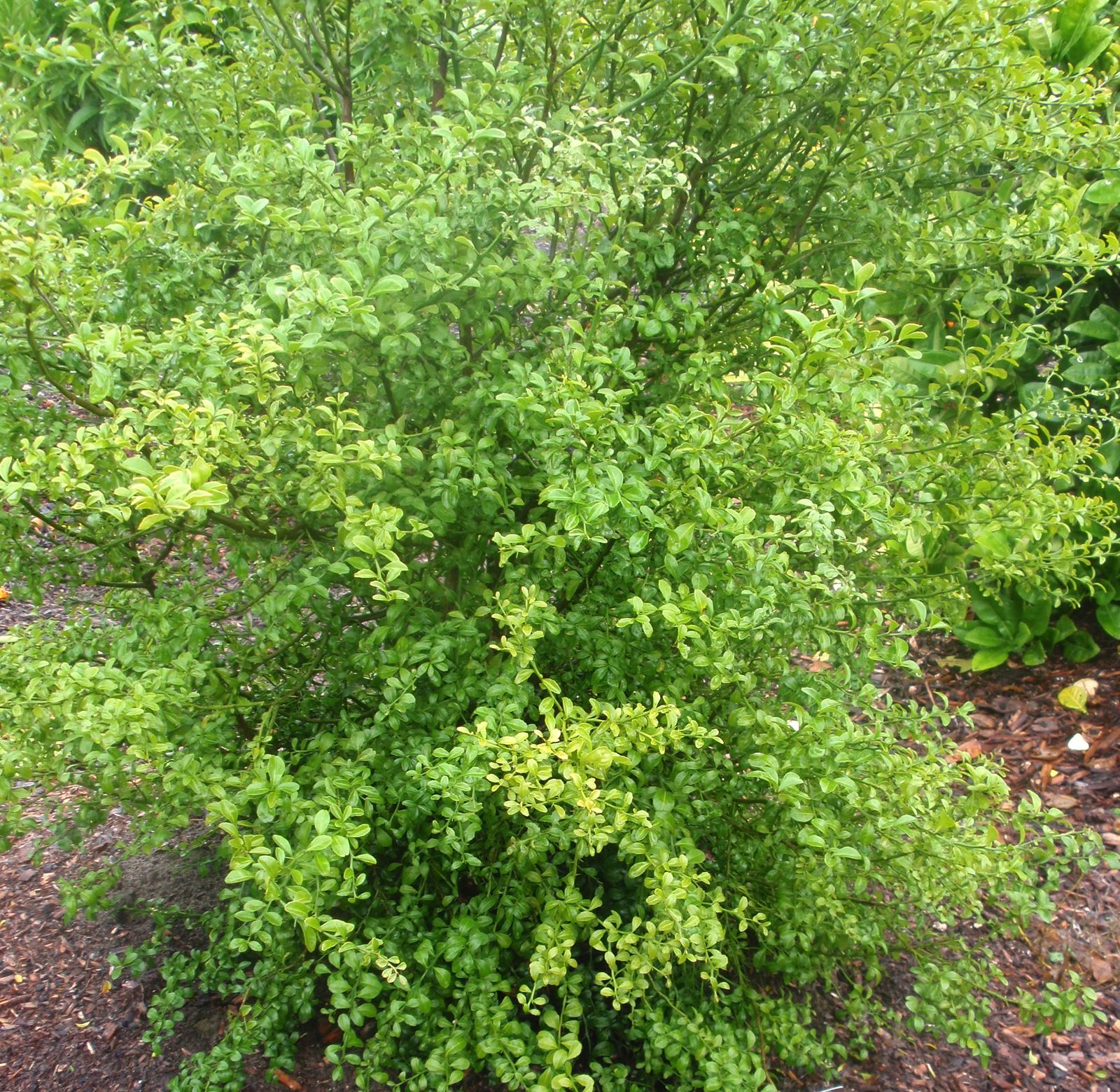 '杜伦斯翡翠'指檬起源于北部河流地区,并于1994年引入种植。该品种是一个枝叶中等密度的中等灌木,高2米,宽1.7米;树姿开张性中等;腋生单生枝刺,长度约25毫米;叶片单生,倒卵形到椭圆形,无毛;花白色(花蕾带粉色),直径约10-15mm;8 - 9月开花。果实为圆柱形浆果,长4-8厘米,直径15-25毫米,果皮黑色紧实,果肉翠绿色。'杜伦斯翡翠'指檬在夏季到深秋期间负载大量的果实,全年都有连续的少量收获。果实的囊胞易提取。2007年2月被接受注册。