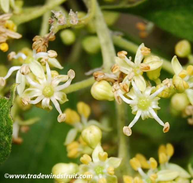 '黄皮'果实或圆形,或圆锥形形,最长可达2.5厘米。它在昆士兰、澳大利亚和夏威夷有一定程度的种植。1908年,它作为一个身份不明的物种被带到佛罗里达。